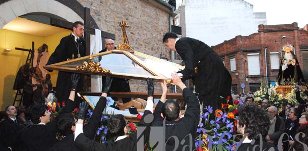 La cofradía de Nuestra Señora de las Angustias y Soledad de La Bañeza ha optado este Viernes Santo por la tarde por suspender la tradicional procesión del Santo Entierro ante las previsiones de lluvias, aunque se celebró un sencillo acto del Desenclavo de Cristo en la entrada de la capilla, con las intervenciones de la banda de la hermandad y de la Banda Municipal de Música, además del grupo de liturgia de la Parroquia de El Salvador.