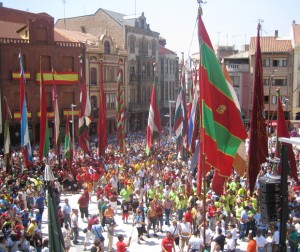 Imagen de archivo de la bendición del Pendón de La Bañeza, en 2010, en una plaza Mayor abarrotada de público.