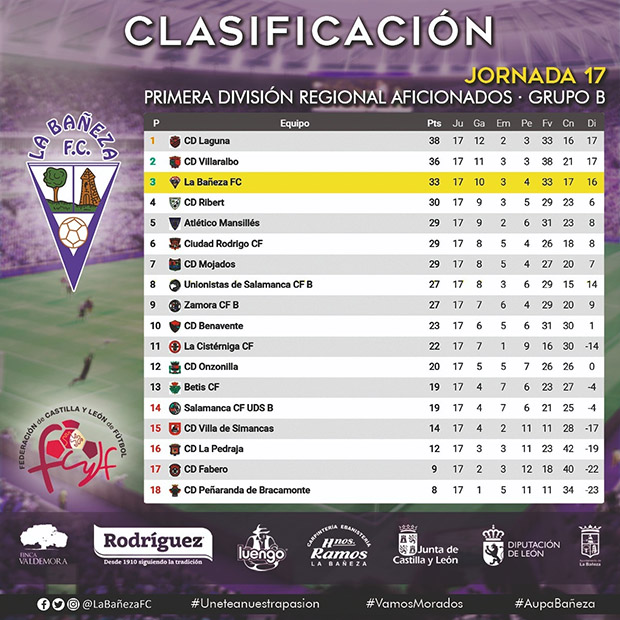 Clasificación actual que afianza a La Bañeza FC en la tercera posición.