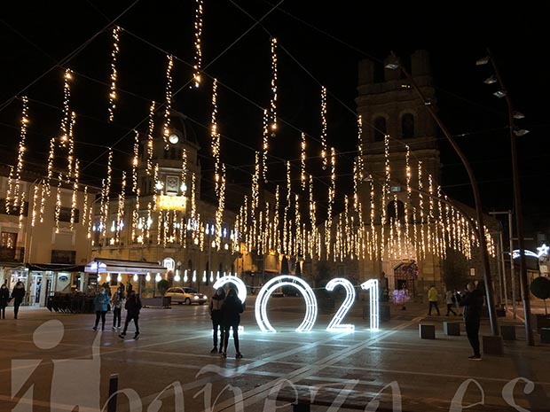 El Ayuntamiento de La Bañeza inauguró este viernes de manera oficial la iluminación y decoración navideñas con un acto simbólico celebrado en la Plaza Mayor, donde este año se ha colocado una especie de ‘techo’ con adornos siguiendo la cuadrícula del pavimento y un 2021 luminoso gigante para que los que visiten la ciudad puedan hacerse una fotografía de recuerdo y dar la bienvenida al nuevo año.