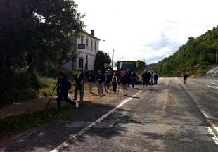 El camino por etapas de Monte Urba recorrió este sábado un nuevo tramo del Camino de Santiago, concretamente en tierras de Galicia la etapa que discurre entre O Cebreiro y Triacastela. Después del trayecto de 20 kilómetros que completaron a mediados de mayo entre Vega de Valcarce y O Cebreiro, en esta ocasión los amigos del Camino de Santiago-Vía de la Plata de La Bañeza se colocan un poco más cerca de la meta: Santiago de Compostela. En la foto, los bañezanos conquistaron el alto del Poio, un lugar que en el trazado histórico supone llegar al punto más alto del camino dentro de la autonomía gallega.