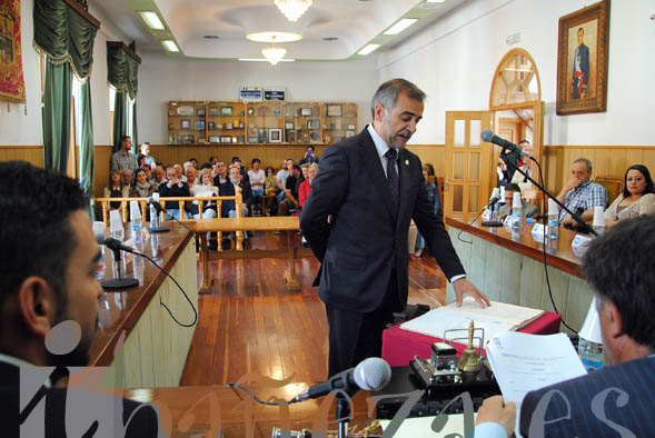 Momento de la promesa de José Miguel Palazuelo como alcalde de La Bañeza tras las pasadas elecciones de mayo de 2015.